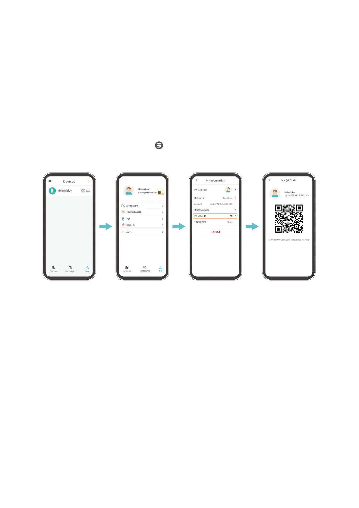 Go to Settings of the App on your mobile device, then select Device Share>Add>Qr code