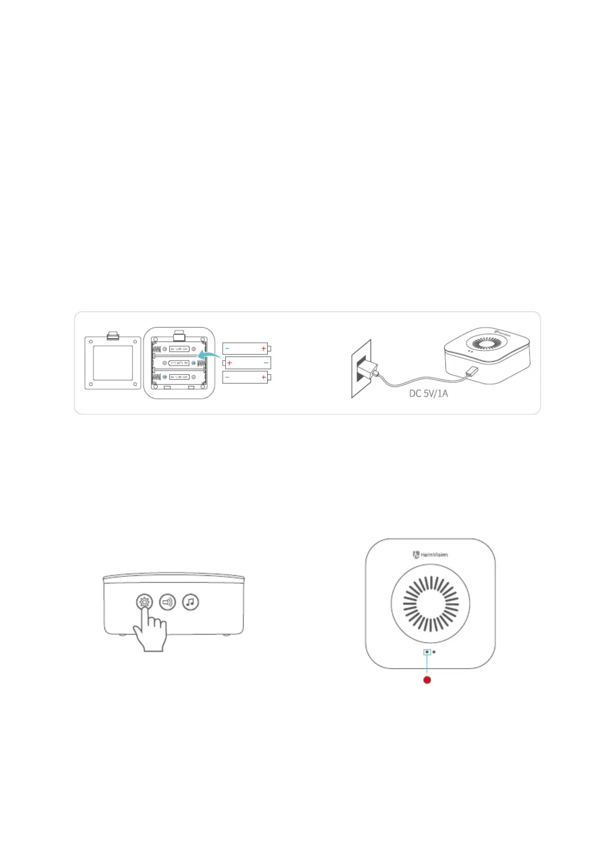 Install 3 pieces of AA batteries onto the battery compartment of the chime, or connect