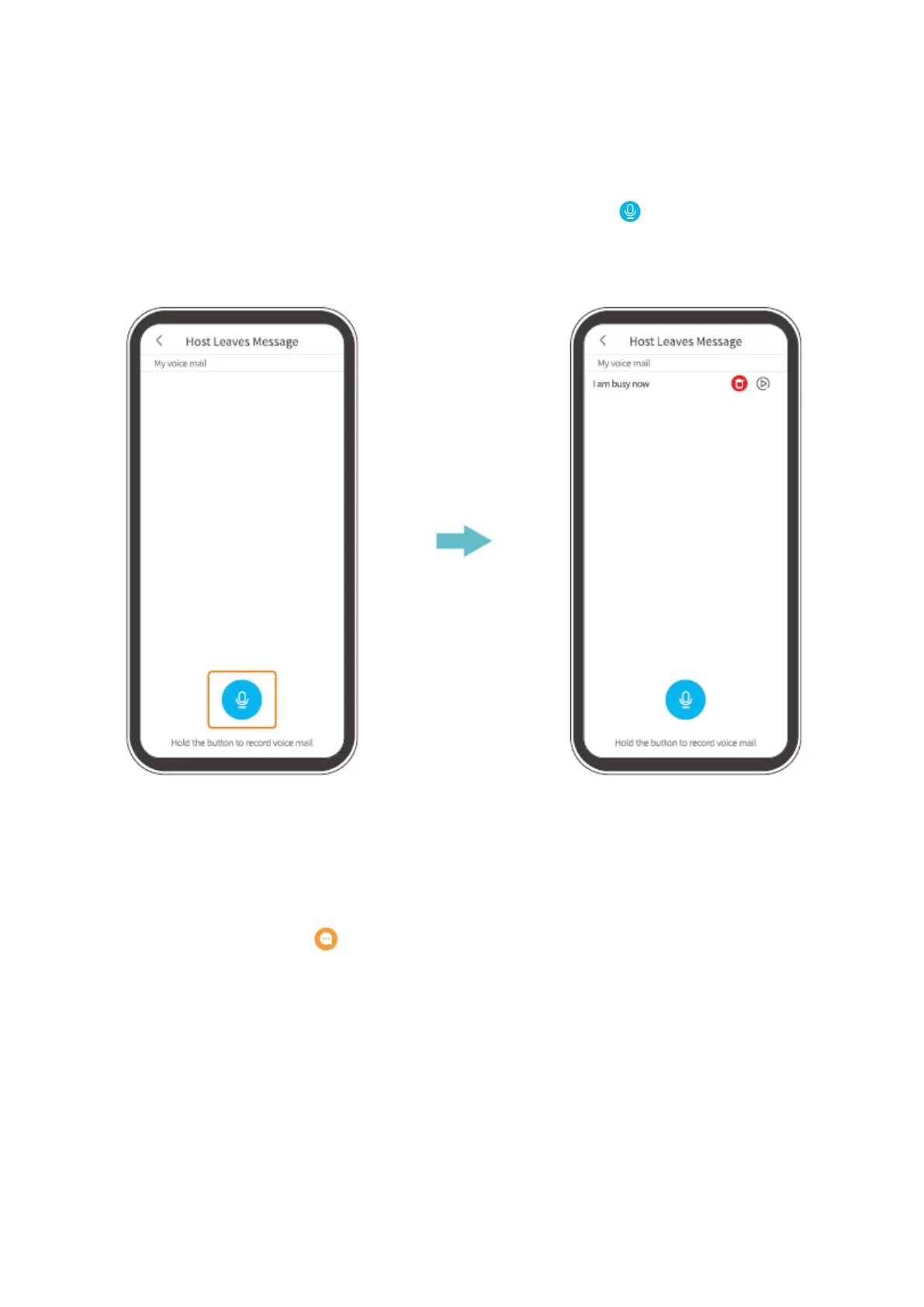 zprávy (Host leaves message) a poté stiskněte a podržte tlačítko pro nahrání hlasové