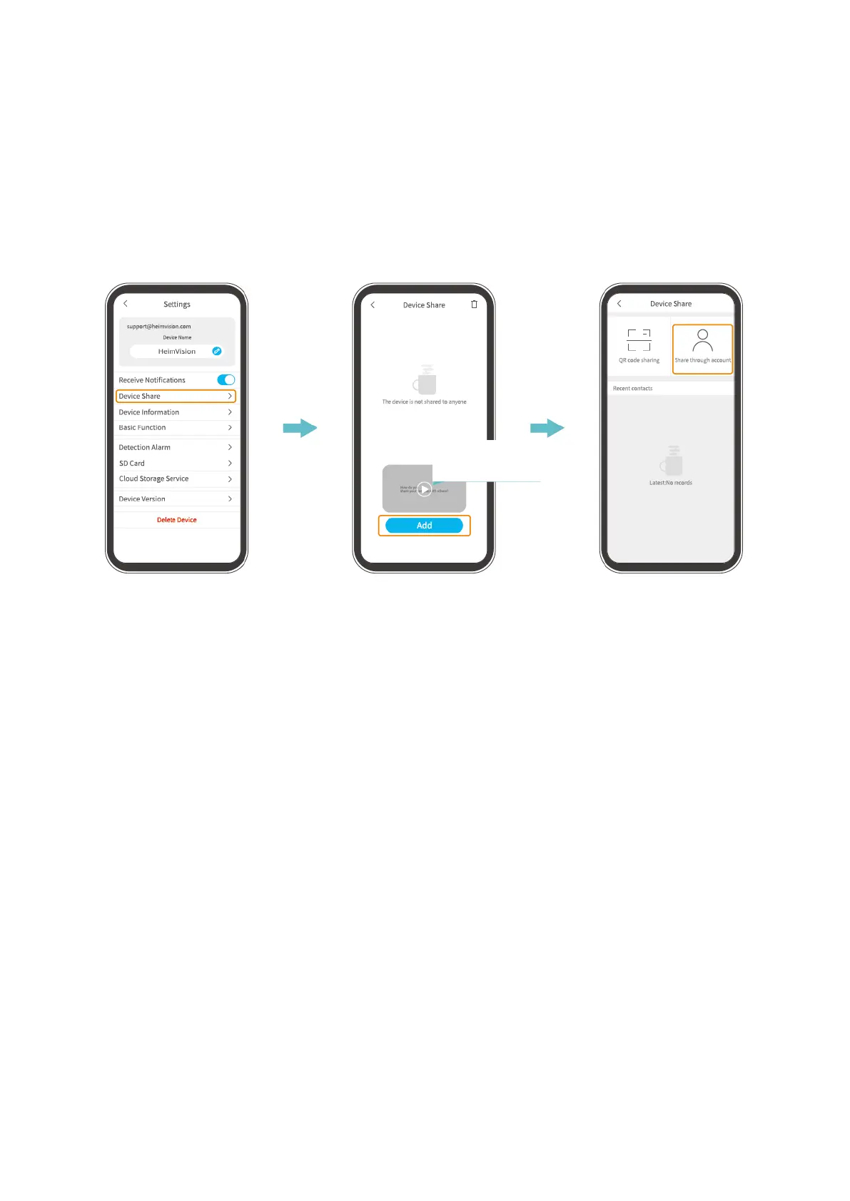 Přejděte do Nastavení (Settings)> Sdílení zařízení (Device Share)> Přidat (Add)> Sdílet
