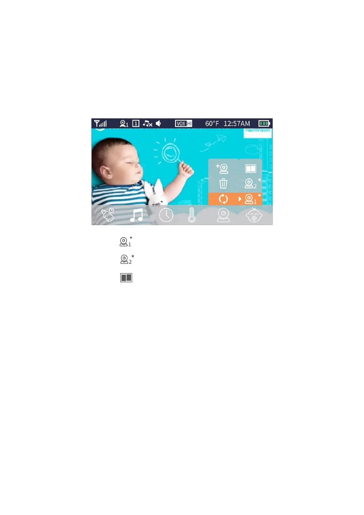 Wählen Sie diese Option , um die Live-Ansicht von der Kamera 1 anzuzeigen.