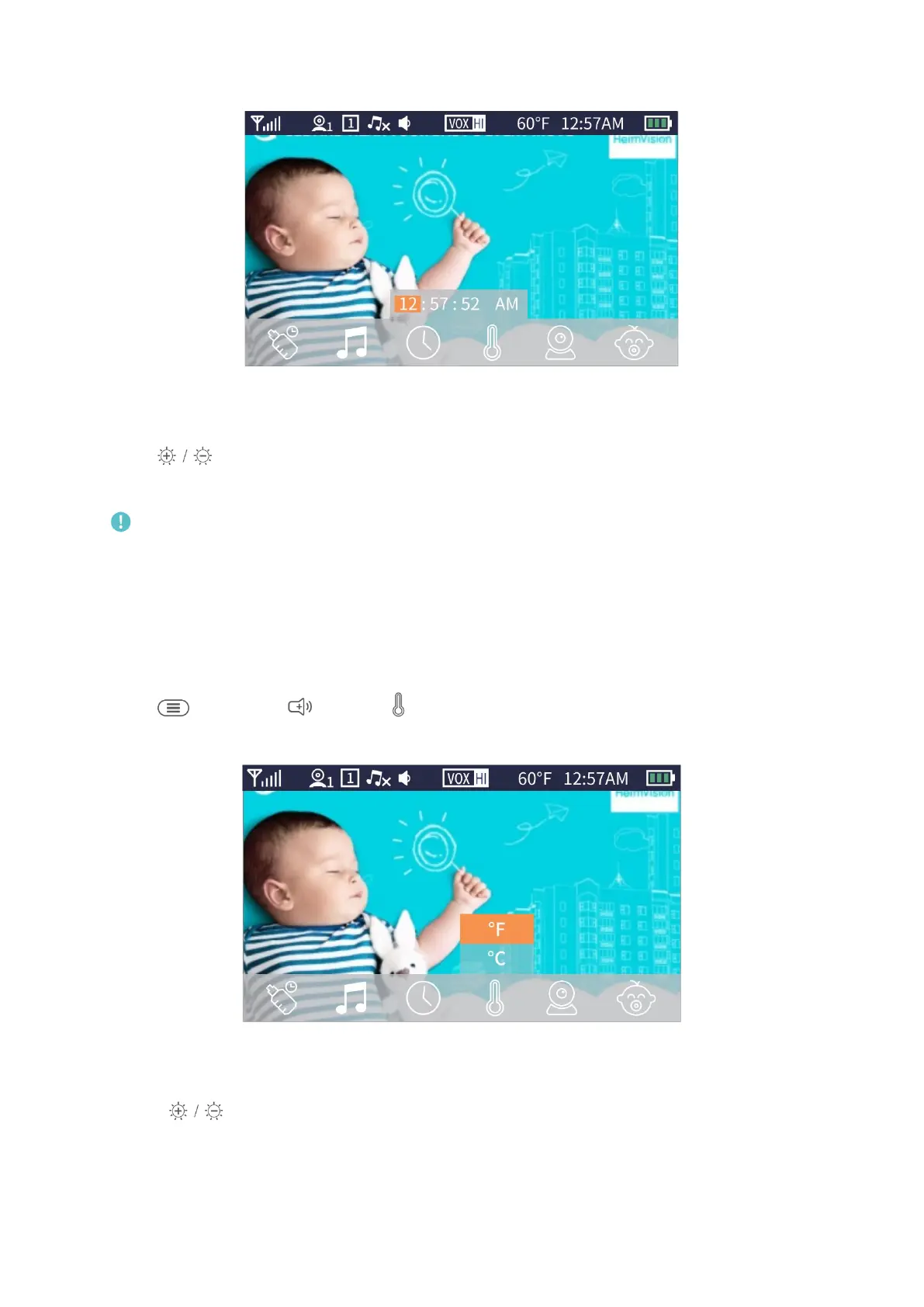 Press to adjust the value of hour/minute/second and change AM/PM accordingly.