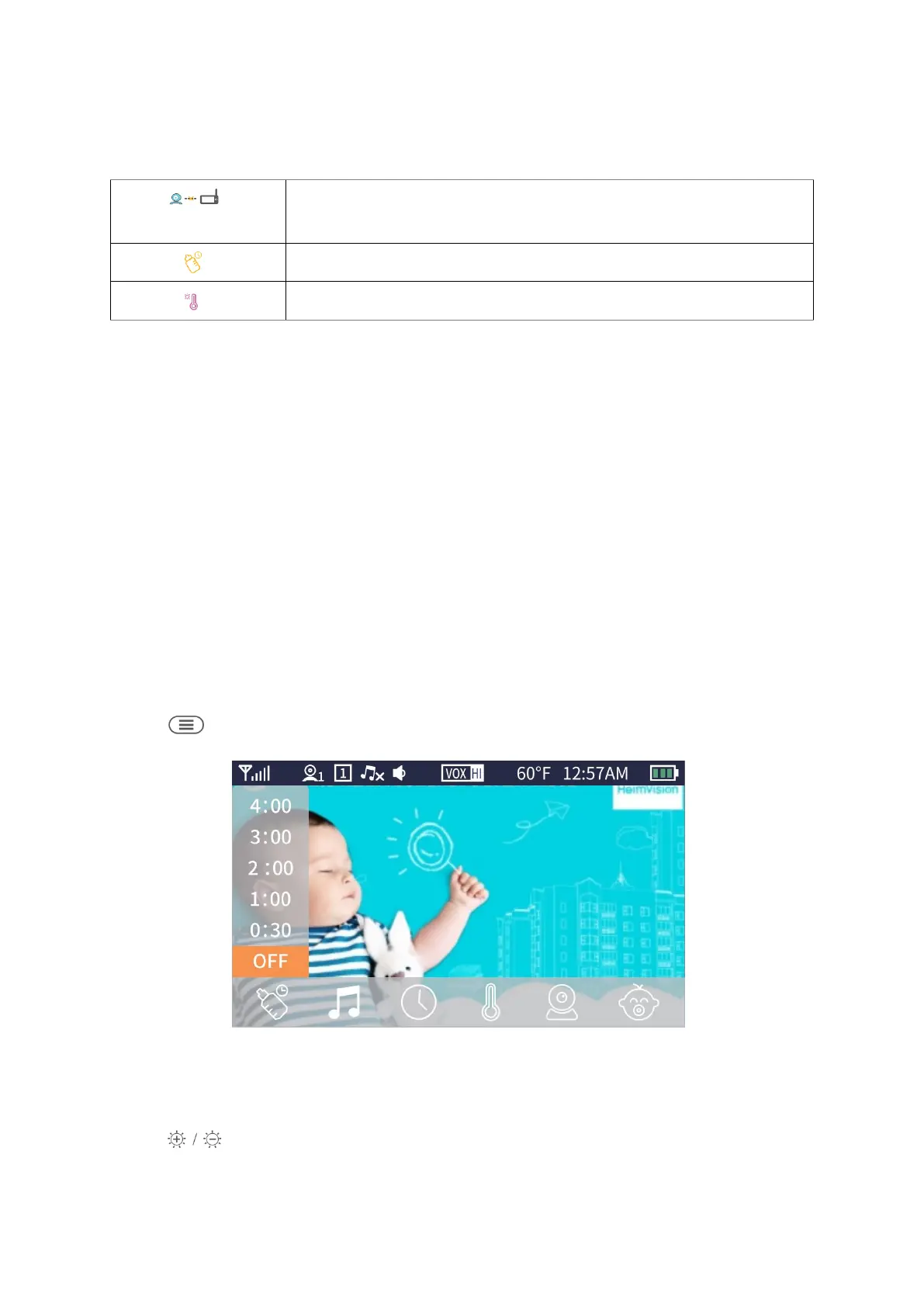 Táto funkcia má za cieľ pripomenúť vám kŕmenie vášho dieťaťa. VYP znamená, že ste