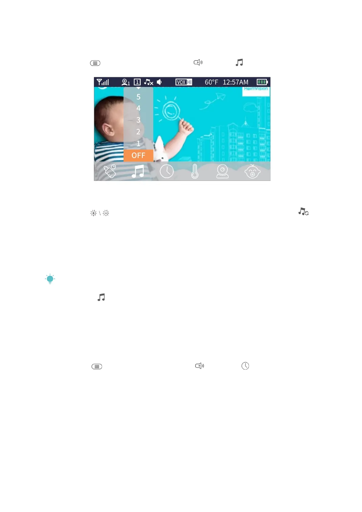 Megnyomhatja a gombot a monitoron az altatódal gyors beállításához.