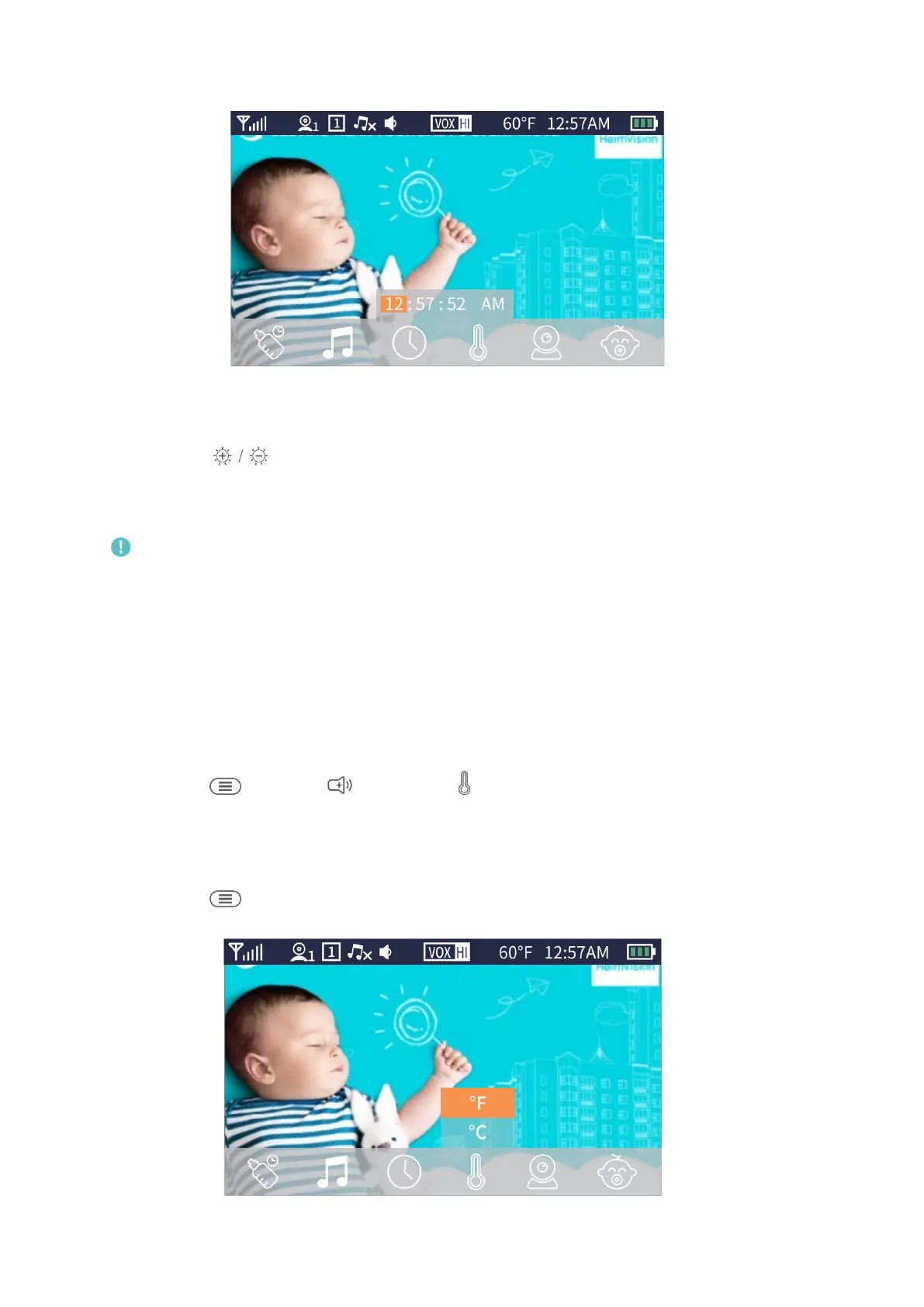 Drücken Sie , um ° F oder ° C auszuwählen, und drücken Sie dann zur Bestätigung