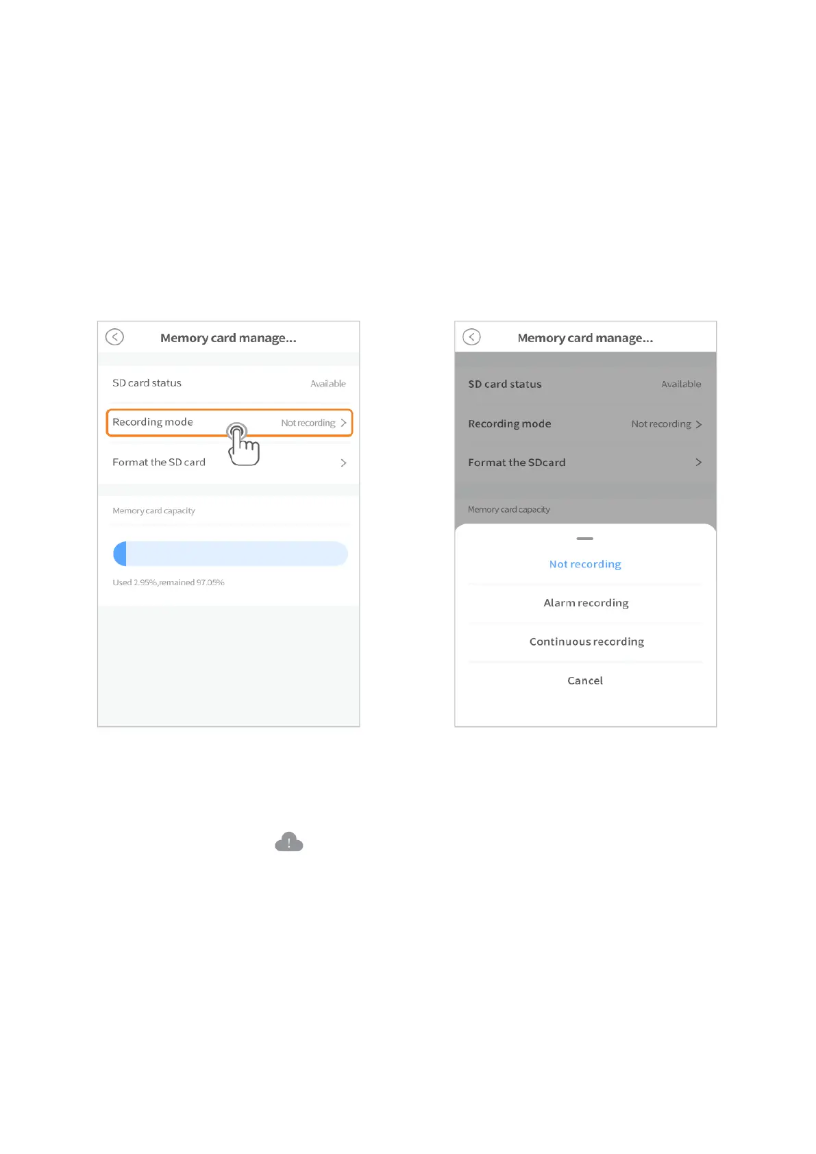 Wählen Sie dann den Aufnahmemodus (recording mode) aus den Optionen Nicht