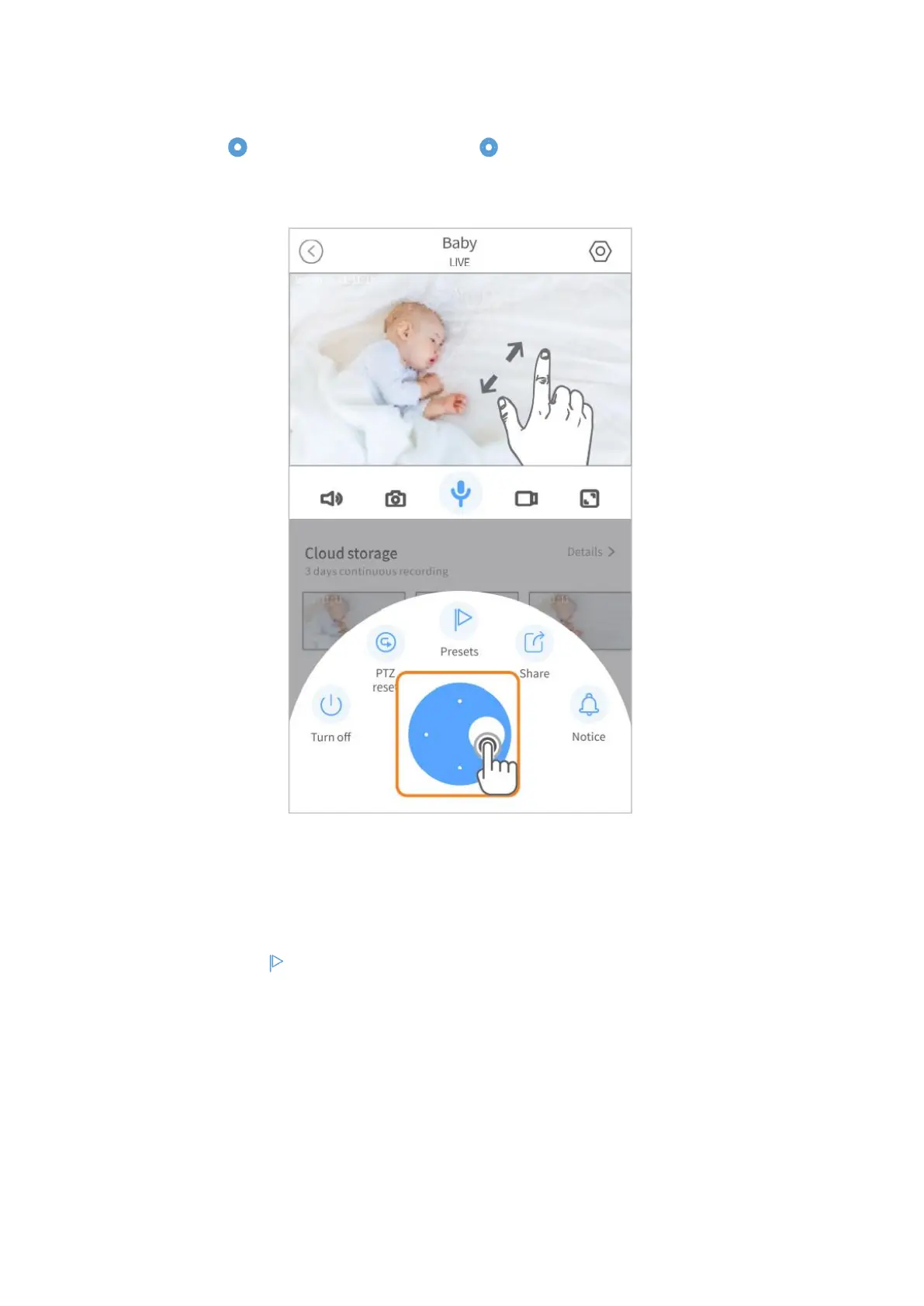 Tippen Sie auf im Live-Video und ziehen Sie , um die Kamera zu drehen/neigen. Sie