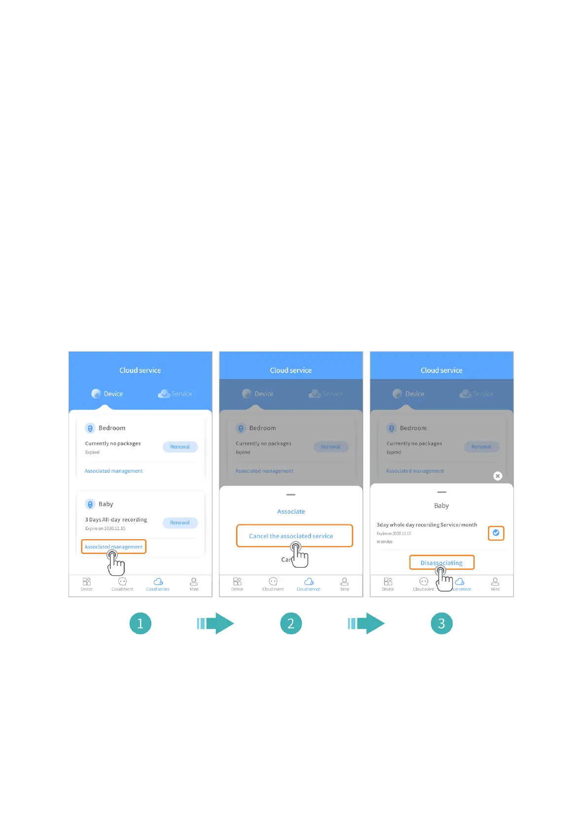 balíček cloudových služeb a klepněte na Odpojit (Disassociating).