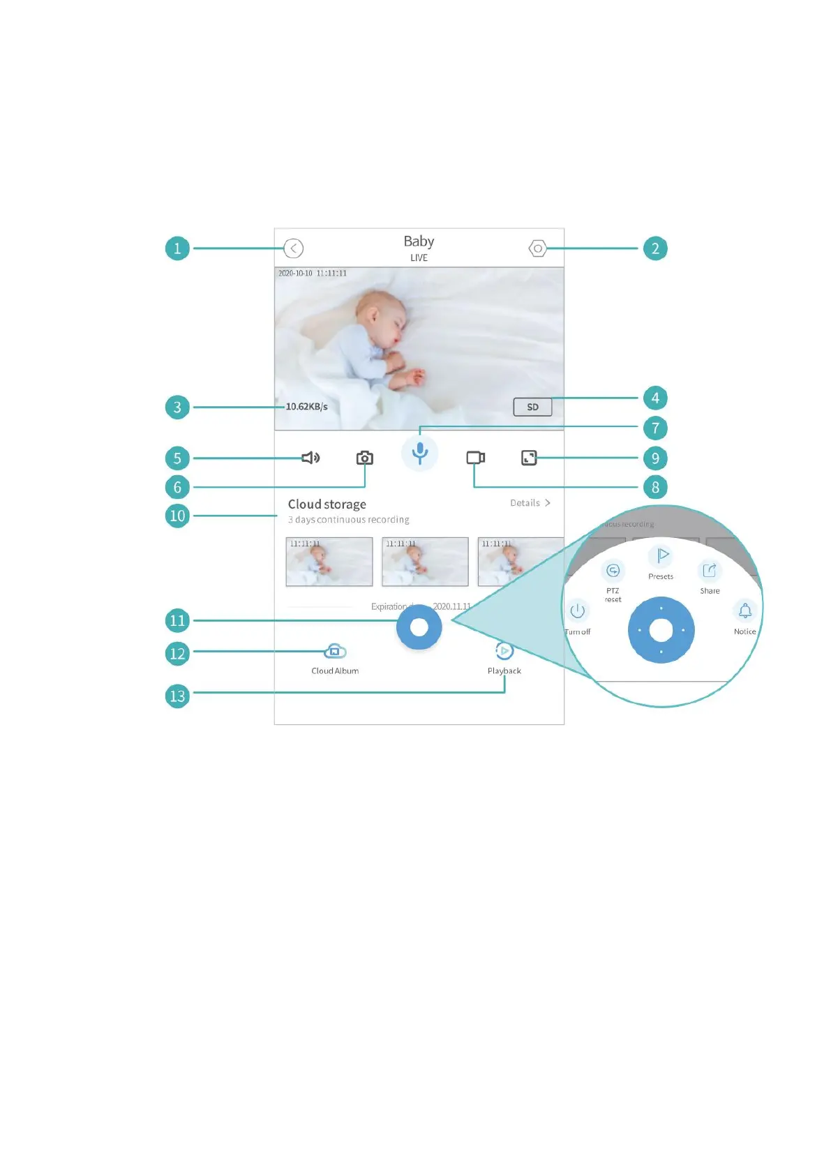 5. Schalten Sie Live-Audio von der Kamera ein / aus.