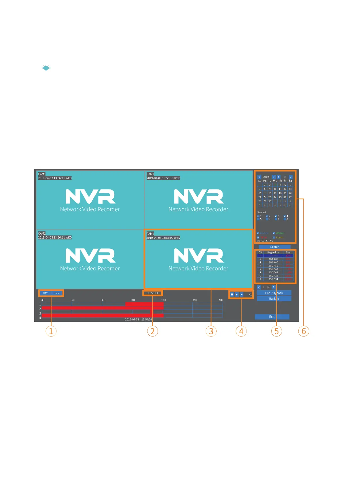 1. Display the timeline by Day/Hour 4. Pause/Play/Fast Forward