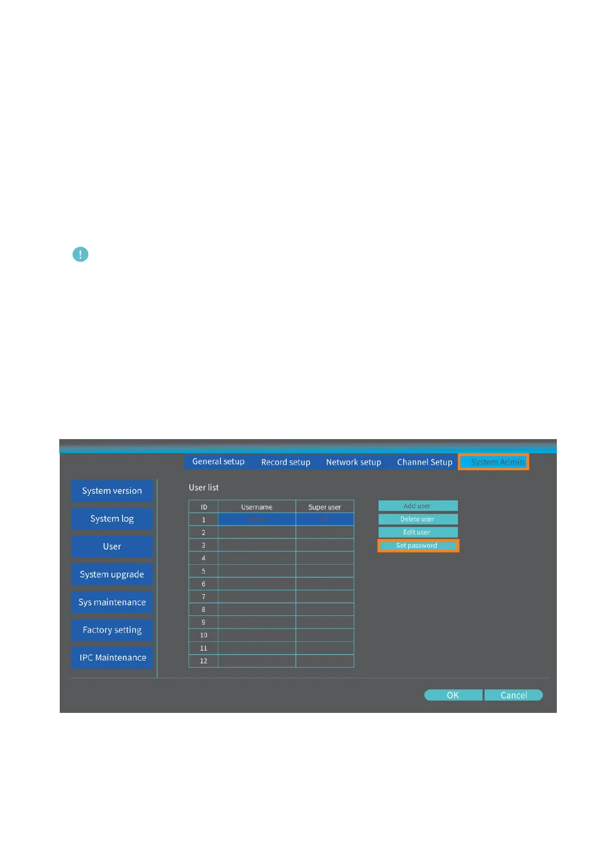 gehen Sie zu System-Setup> Systemadministrator> Benutzer> Kennwort
