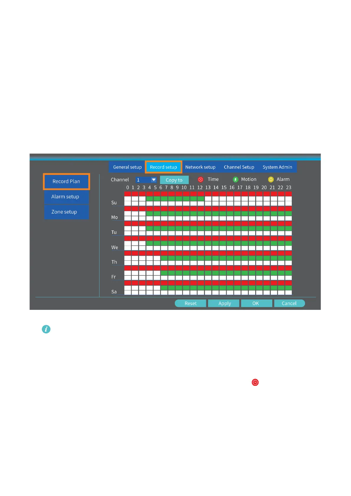 Wählen Sie nach dem Zurücksetzen Kanal aus und klicken Sie auf Zeit , um Zeitpläne