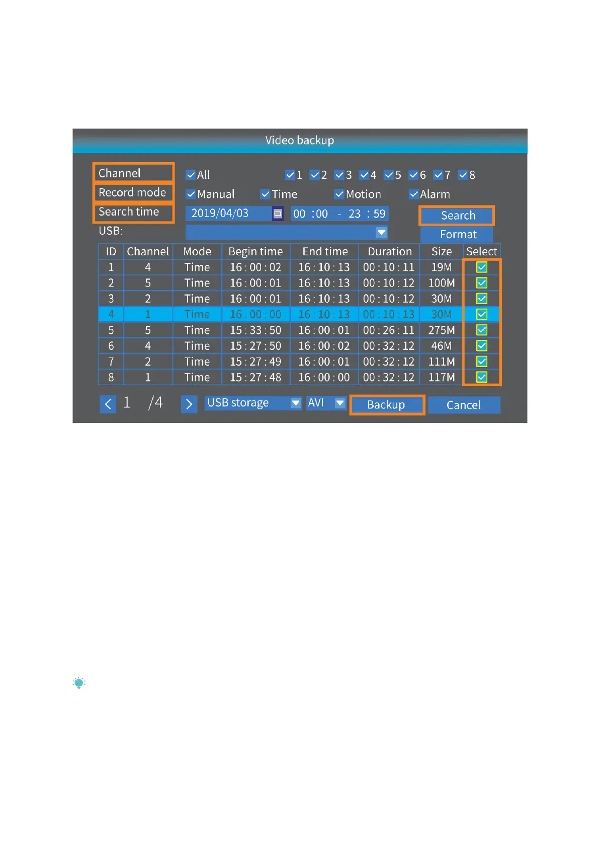 Dann sichert das SVR-System die ausgewählten Videos automatisch auf dem USB-