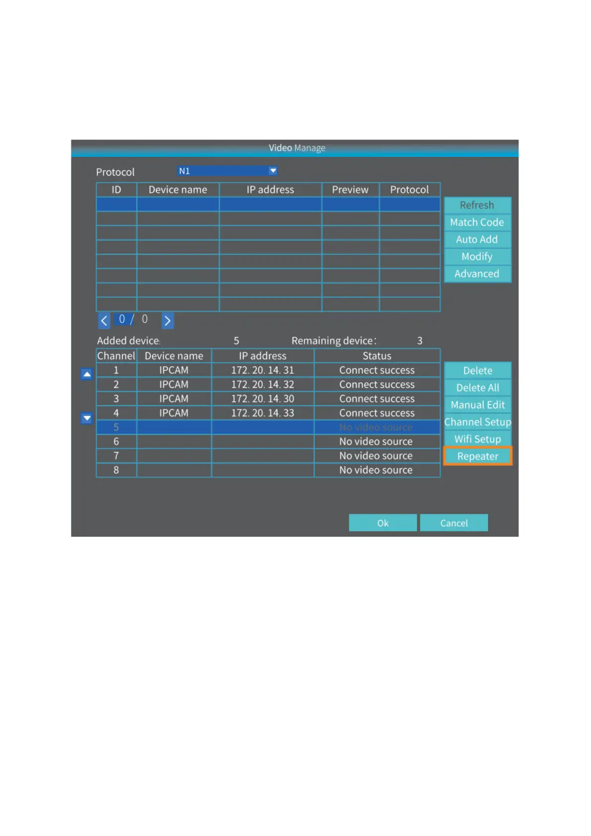 dann auf Videoverwaltung> Repeater, um zu den Repeater-Einstellungen zu gelangen.