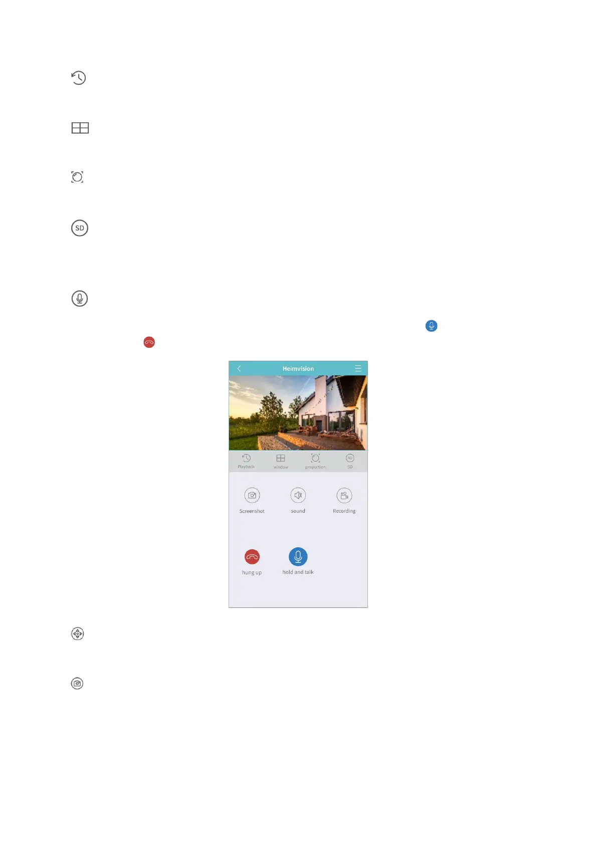 Tap to start talking with people near the NVR. Press and hold the icon to talk;