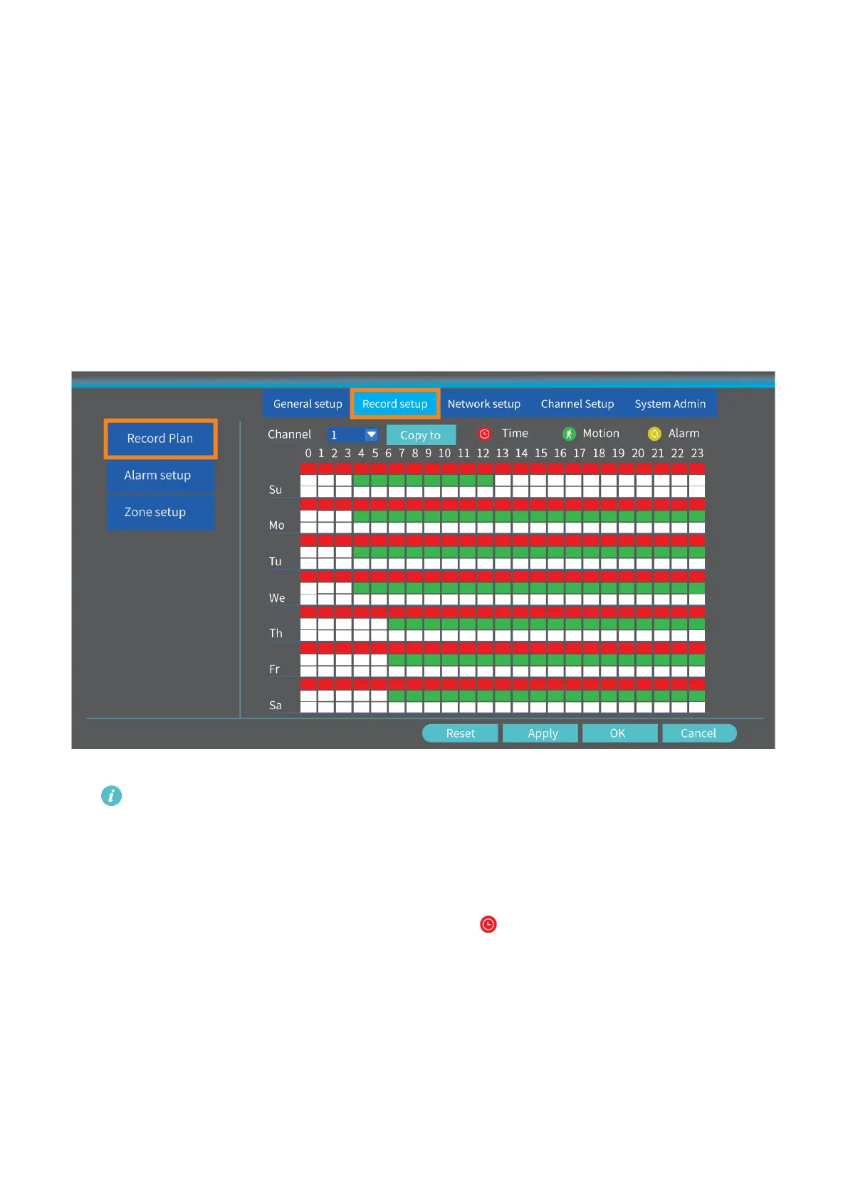 Po resetování vyberte Kanál (Channel) a klikněte na Čas pro nastavování plánů.