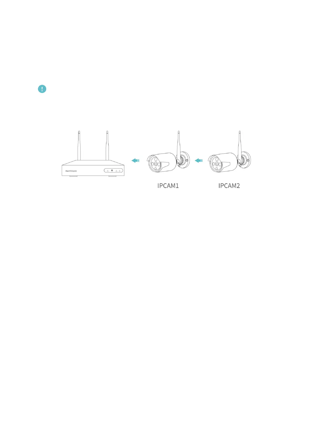 • • Pokud je IPCAM2 instalován mimo dosah WiFi, ale IPCAM1 se silným signálem Wifi