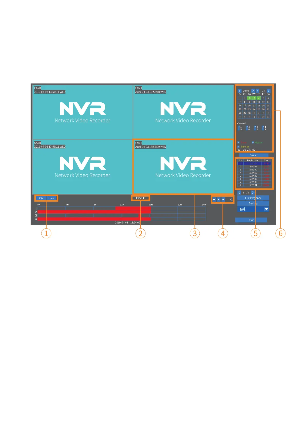 4 csatornáról rögzített videók egyszerre játszhatók le.