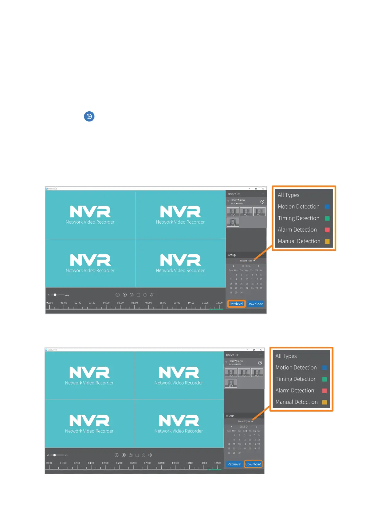 kattintson a Visszakeresés gombra a felvett videók megjelenítéséhez, majd kattintson a