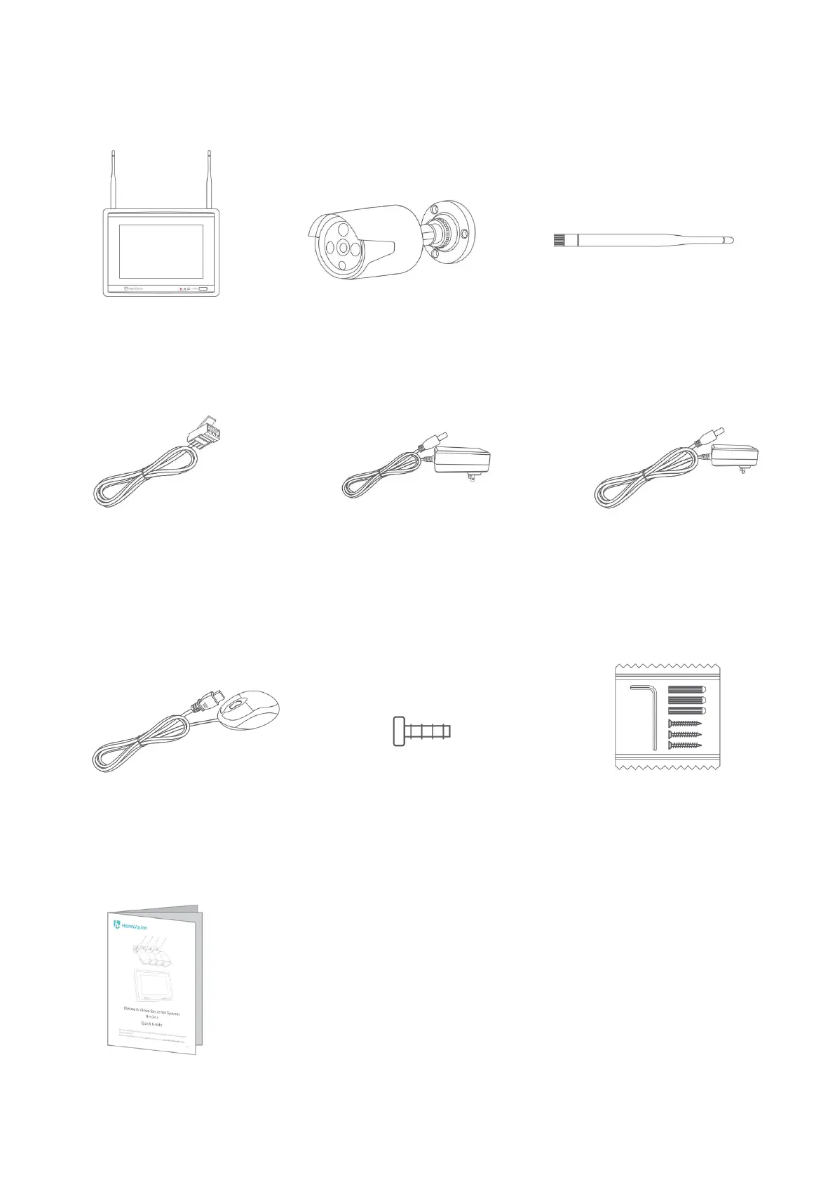 Ethernet Kabel x1 Netzteil x1 DC 12V/2A für NVR Netzteil 4x DC 12V/1A für IP