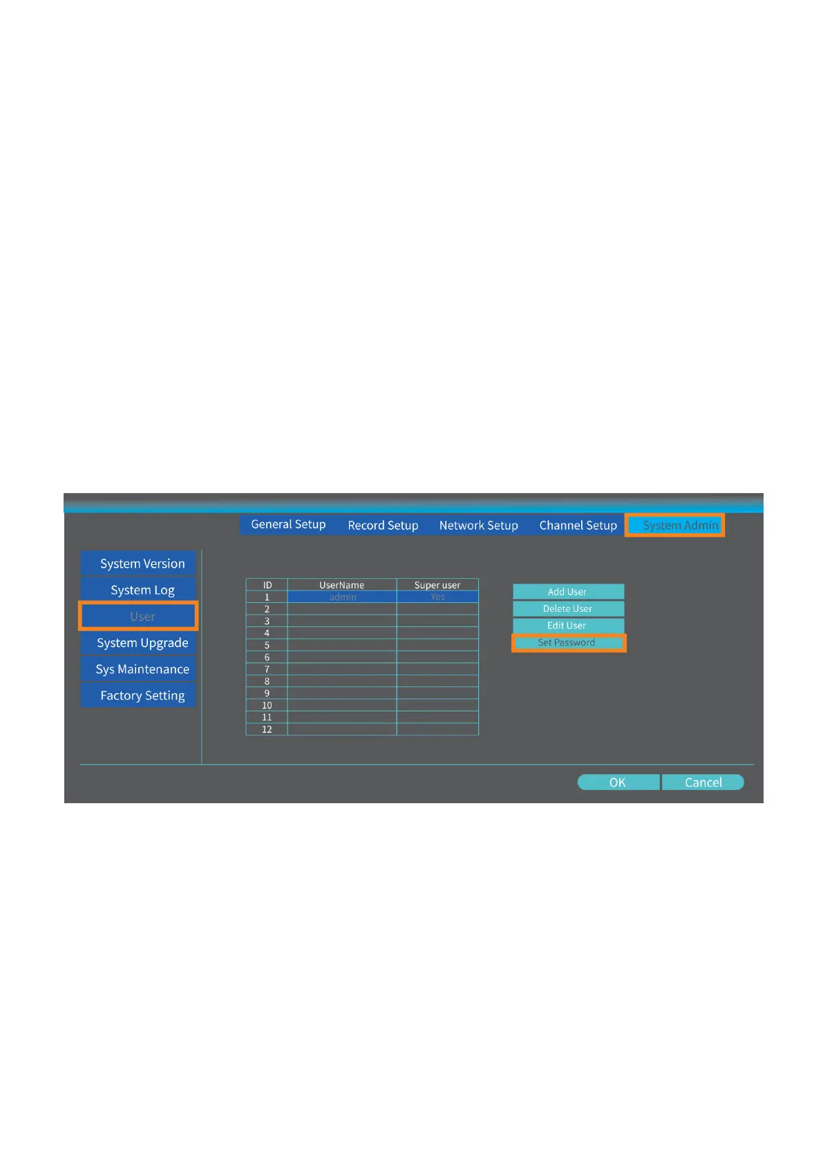 gehen Sie zu System-Setup> Systemadministrator> Benutzer> Kennwort