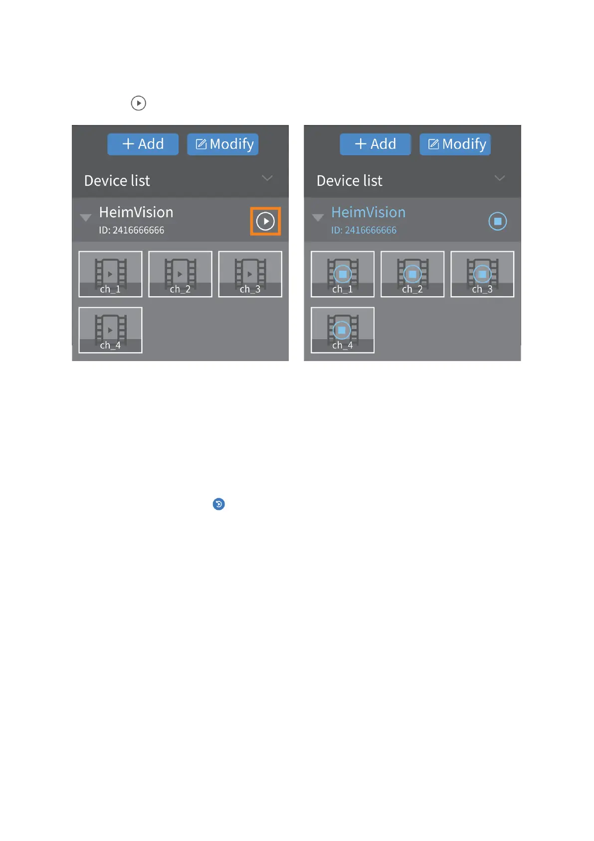 Klikněte na pro připojení vašeho systému NVR a zobrazení živého obrazu kanálů.