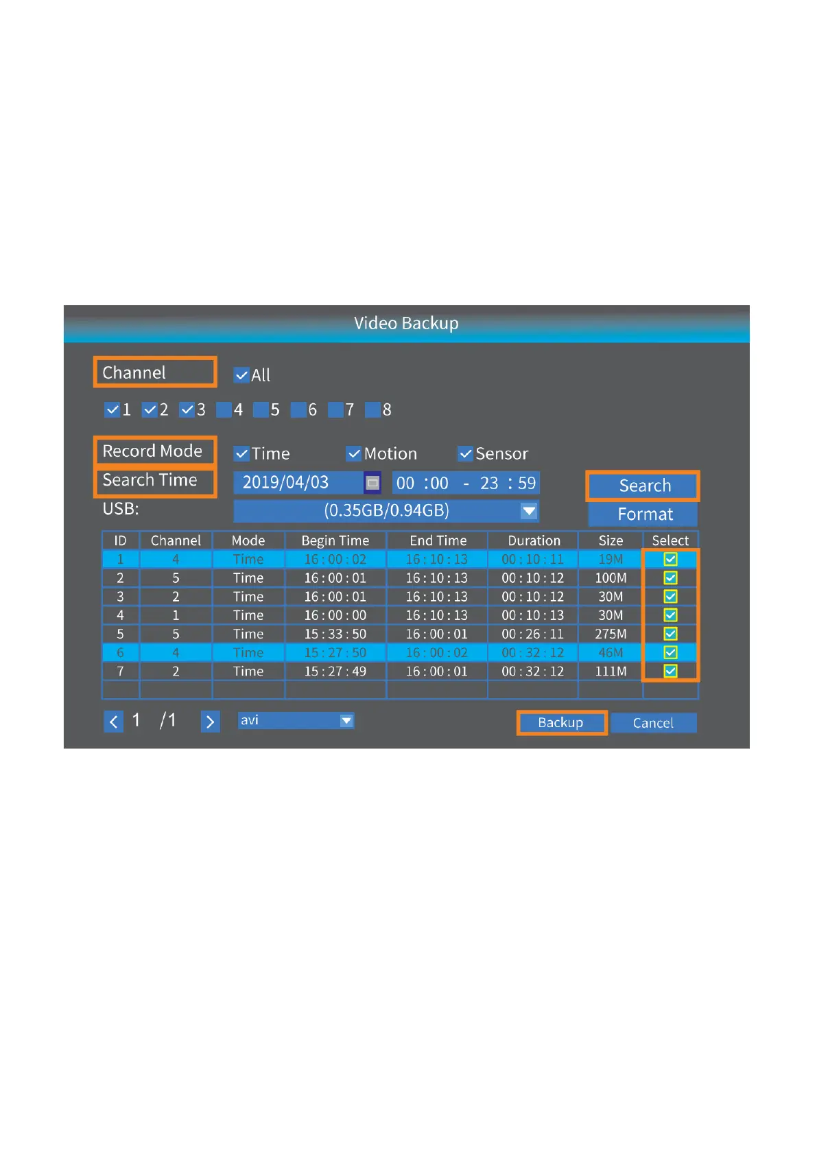 Vyberte videá a kliknite na Zálohovať (Backup), videá sa stiahnu na vašu jednotku USB.