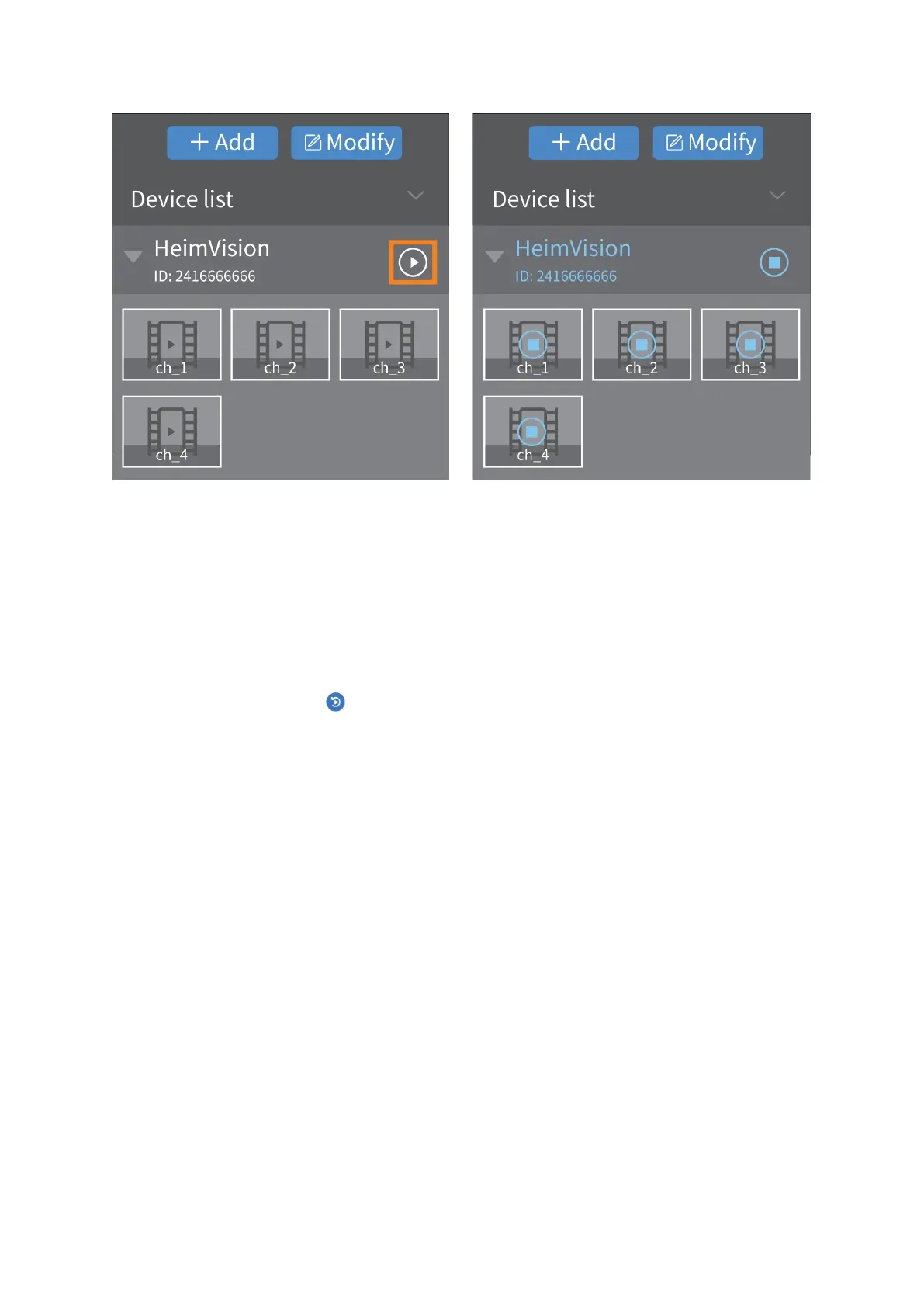 Zobrazí sa zoznam zariadení (Device list) s grafickou štruktúrou. Ak je zobrazený so