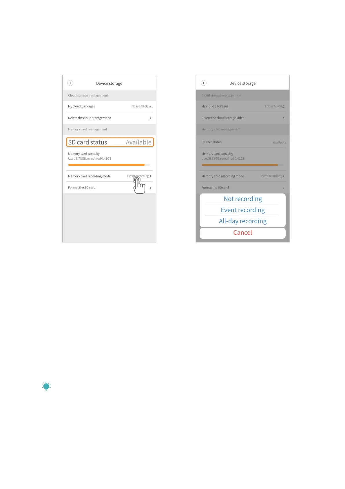 Ereignisaufzeichnung (Event recording) bedeutet, dass die Kamera Videos auf