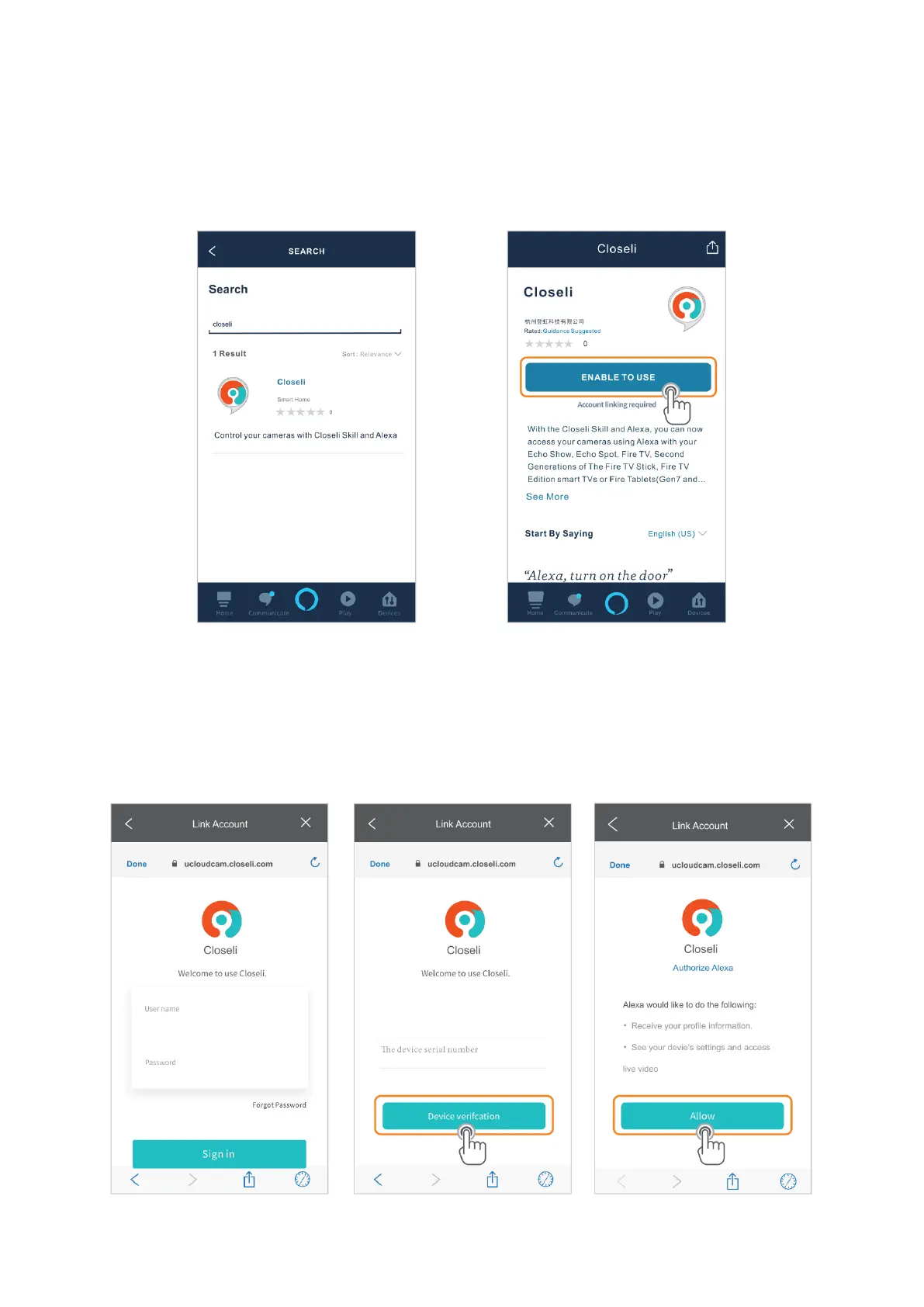 Melden Sie sich mit Ihrem HeimLink-Konto bei Closeli an, geben Sie die Seriennummer