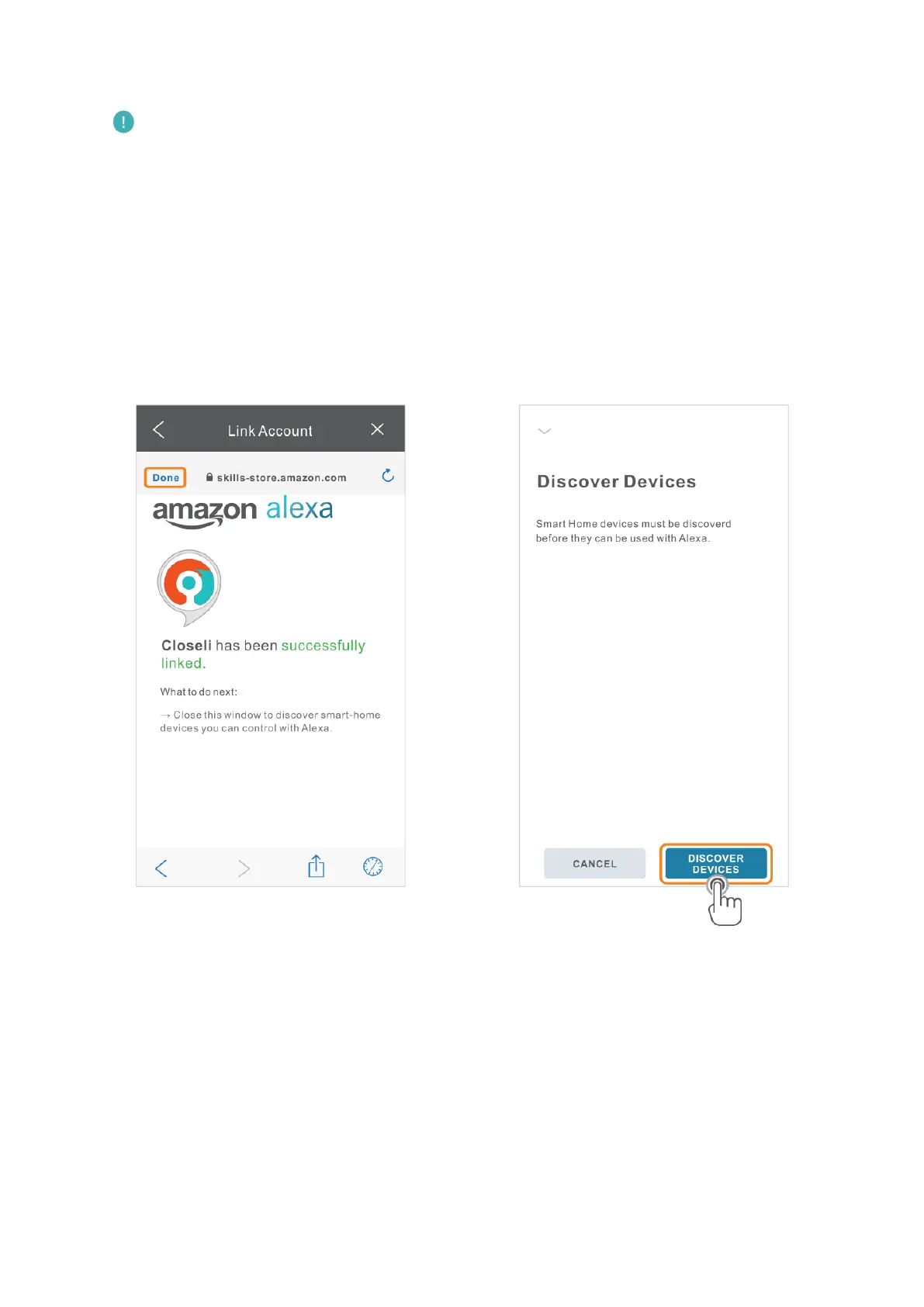 wurde erfolgreich verknüpft (Closeli has been successfully linked), klicken Sie dann auf