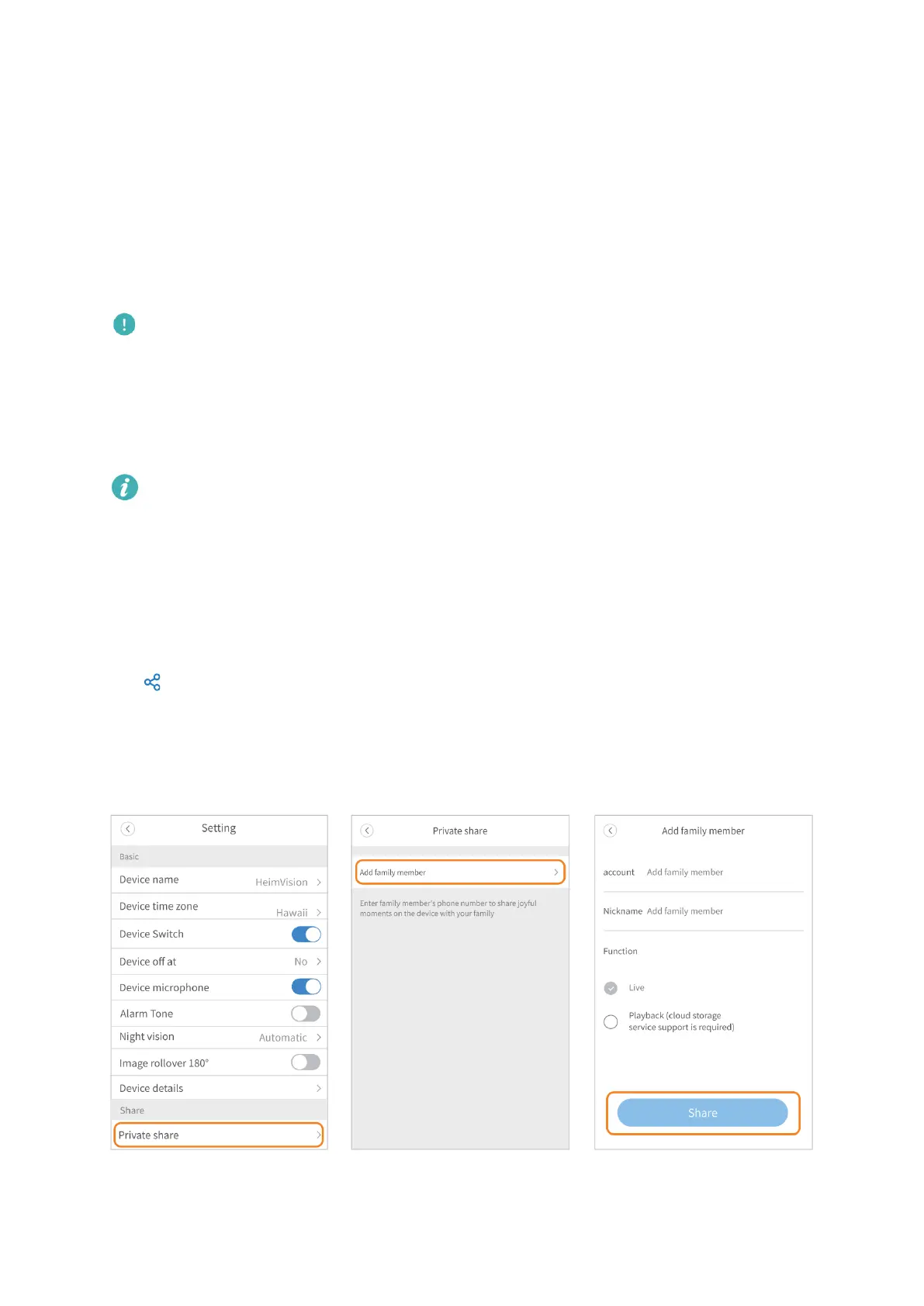 Tap on the main interface or go to Setting > Private share > Add family member, then