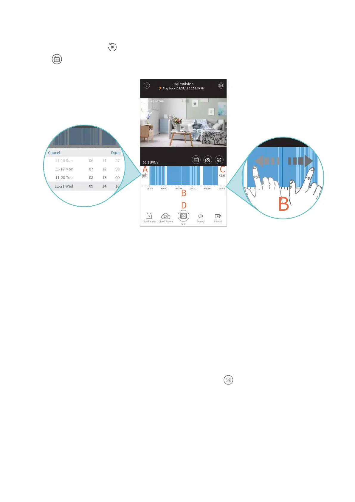 Keď prehrávate nahrané videá z cloudu, na časovej osi sa zobrazia dve farby, aby bolo