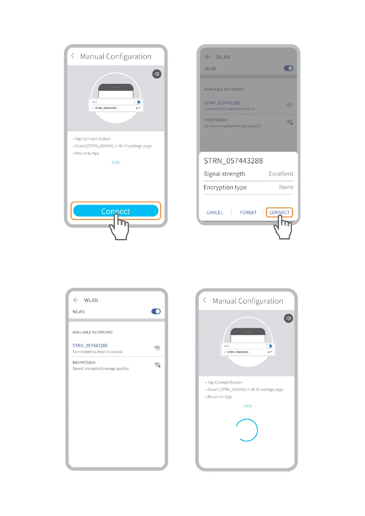 Kehren Sie nach dem Verbinden von Wi-Fi STRN_XXXXXX zu HeimLife zurück und verbinden Sie