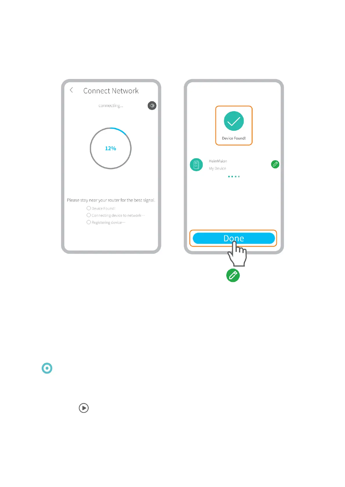 Nalezené zaříze (Device found) znamená úspěšné připojení, pak klepnutím na Hotovo (Done)