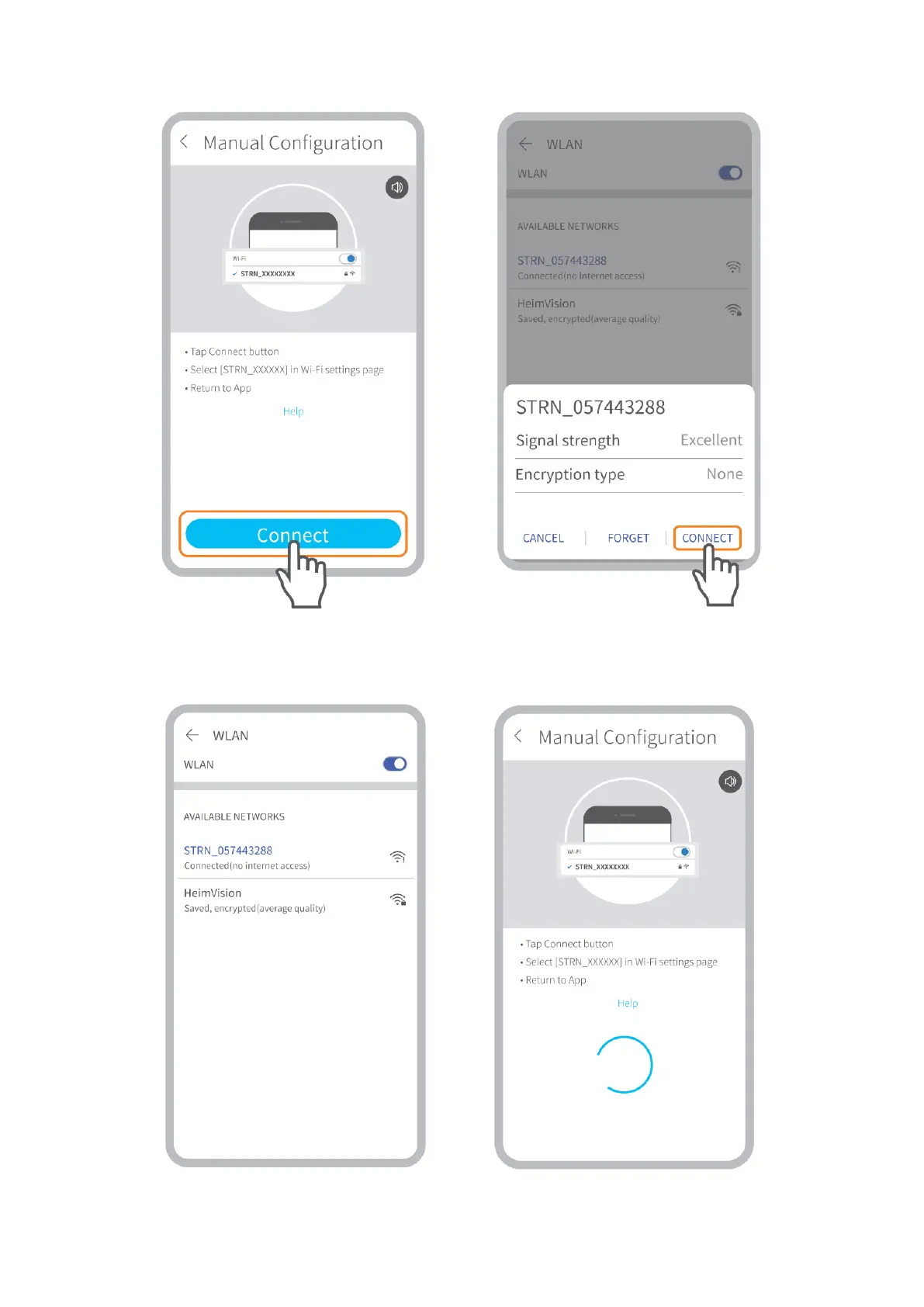 Po pripojení Wi-Fi STRN_XXXXXX sa vráťte späť do aplikácie HeimLife a začnite pripájať kameru.