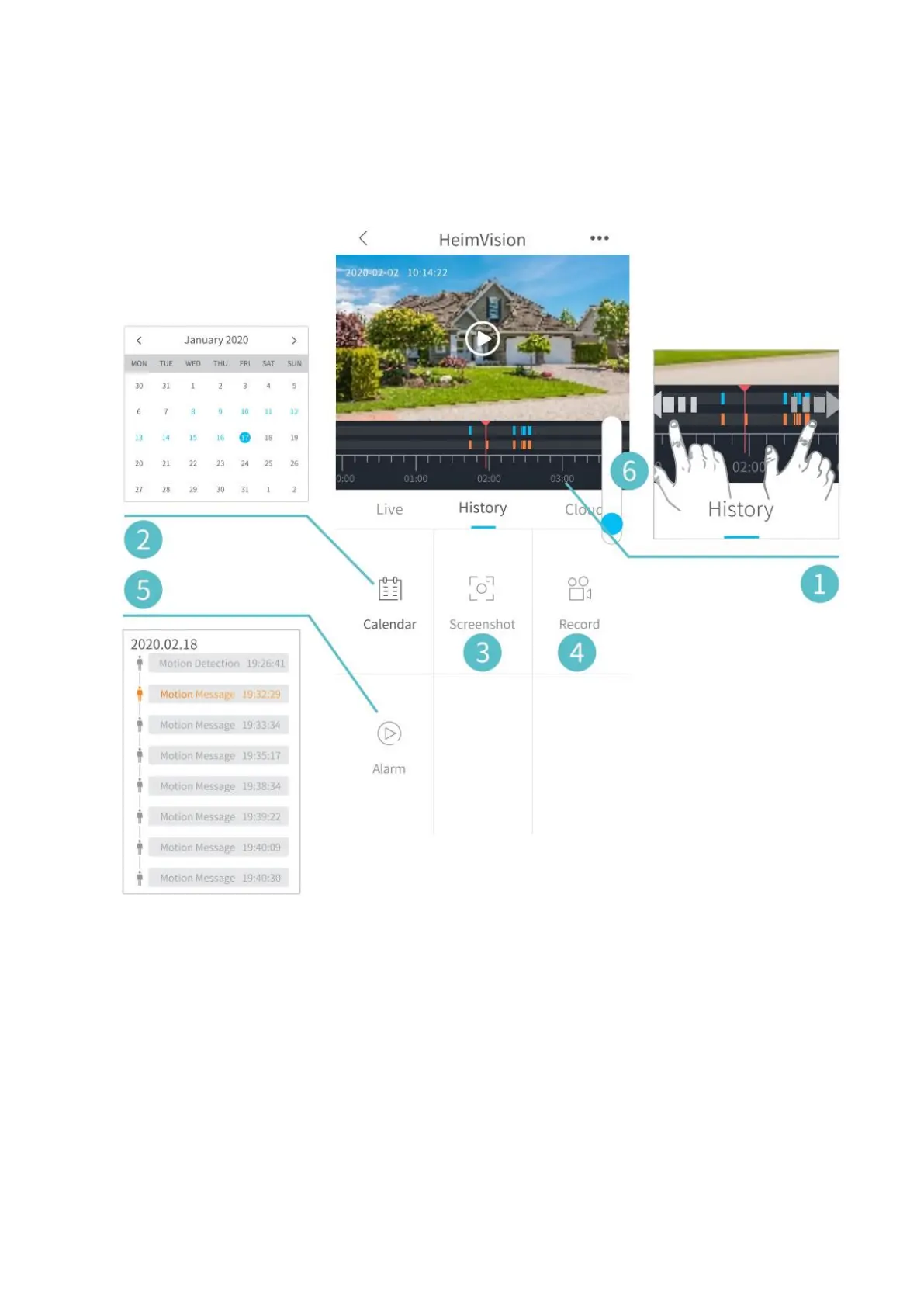 2. Kalendár: Kliknutím na dátum s modrým pozadím prehráte video nahraté v daný deň.