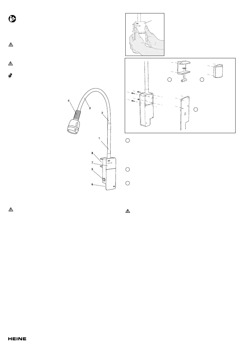 Kontrollér inden ibrugtagningen, at den monterede undersøgelseslampe