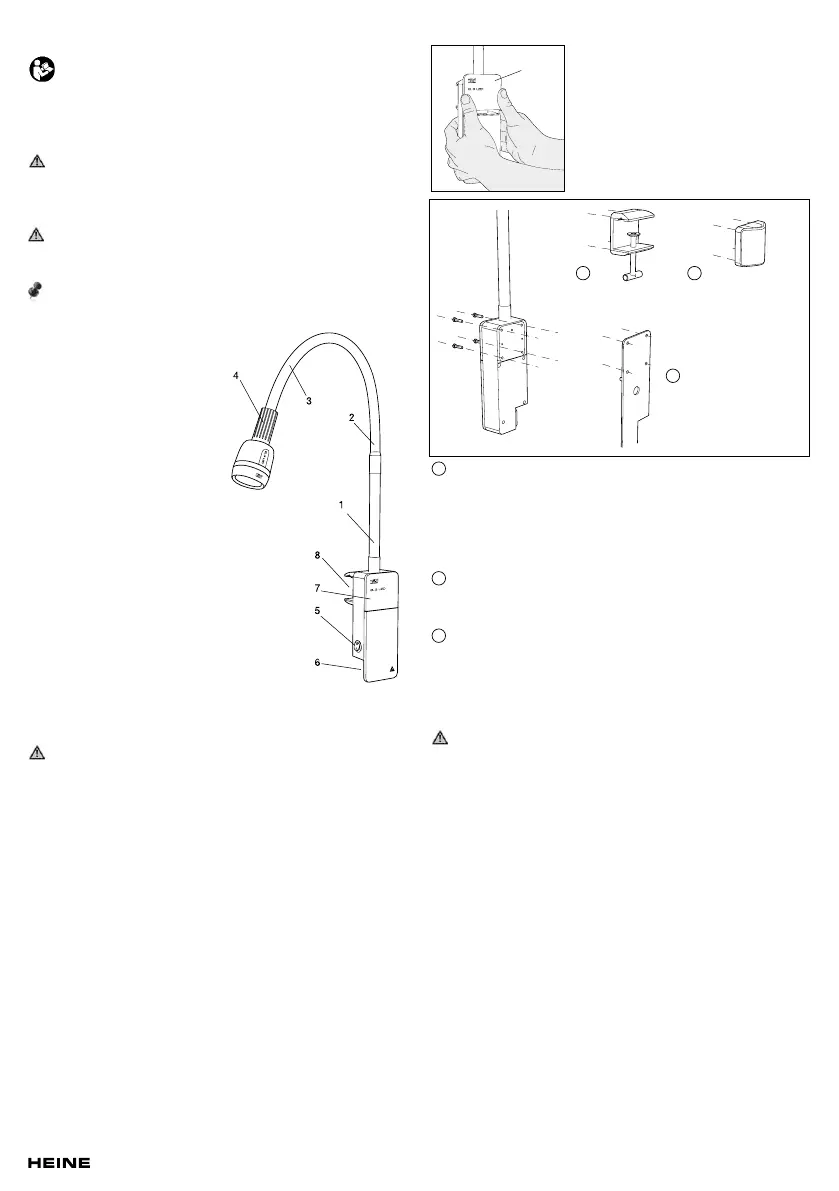 Halt der Untersuchungsleuchte an den jeweiligen Halterungen zu