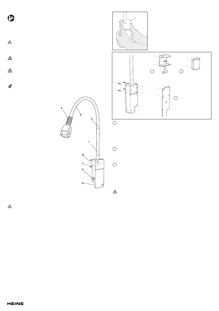 When using the examination light with a stand, clamp or wall mount,