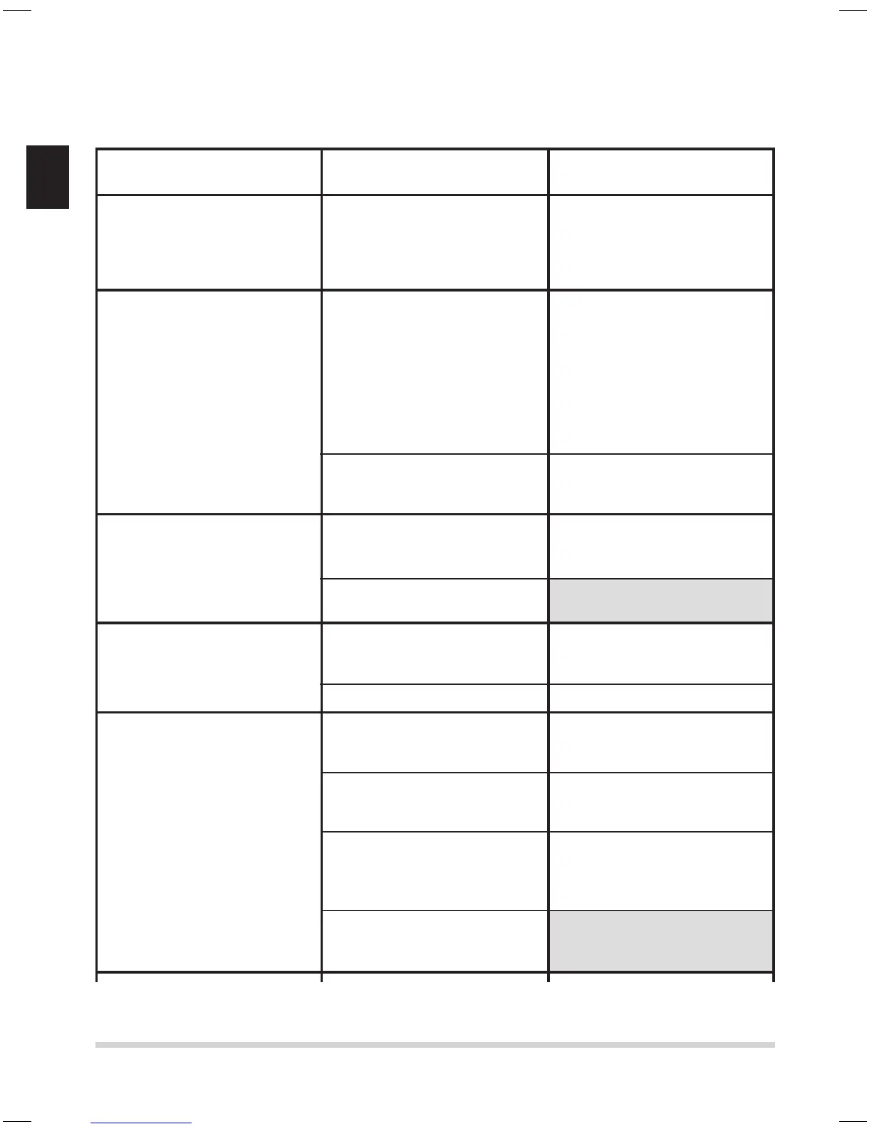 Actions to be taken to rectify malfunctions are indicated in the „Rectification“ column of the malfunction