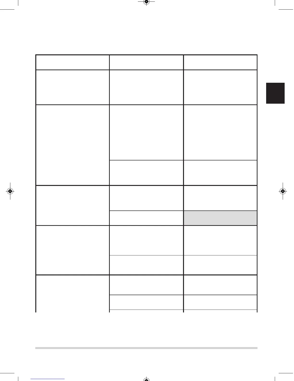 Les mesures qui sont à prendre pour rectifier les dérangements sont indiquées dans la colonne “Rectifica-