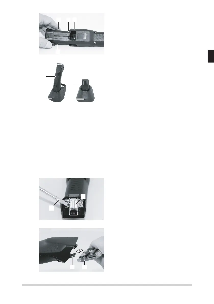 7. Per togliere la tosatrice (1) o la bat-