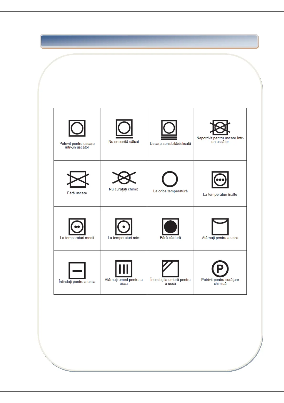 Urmați instrucțiunile de pe etichetele rufelor de uscat. Doar articolele uscate care au o