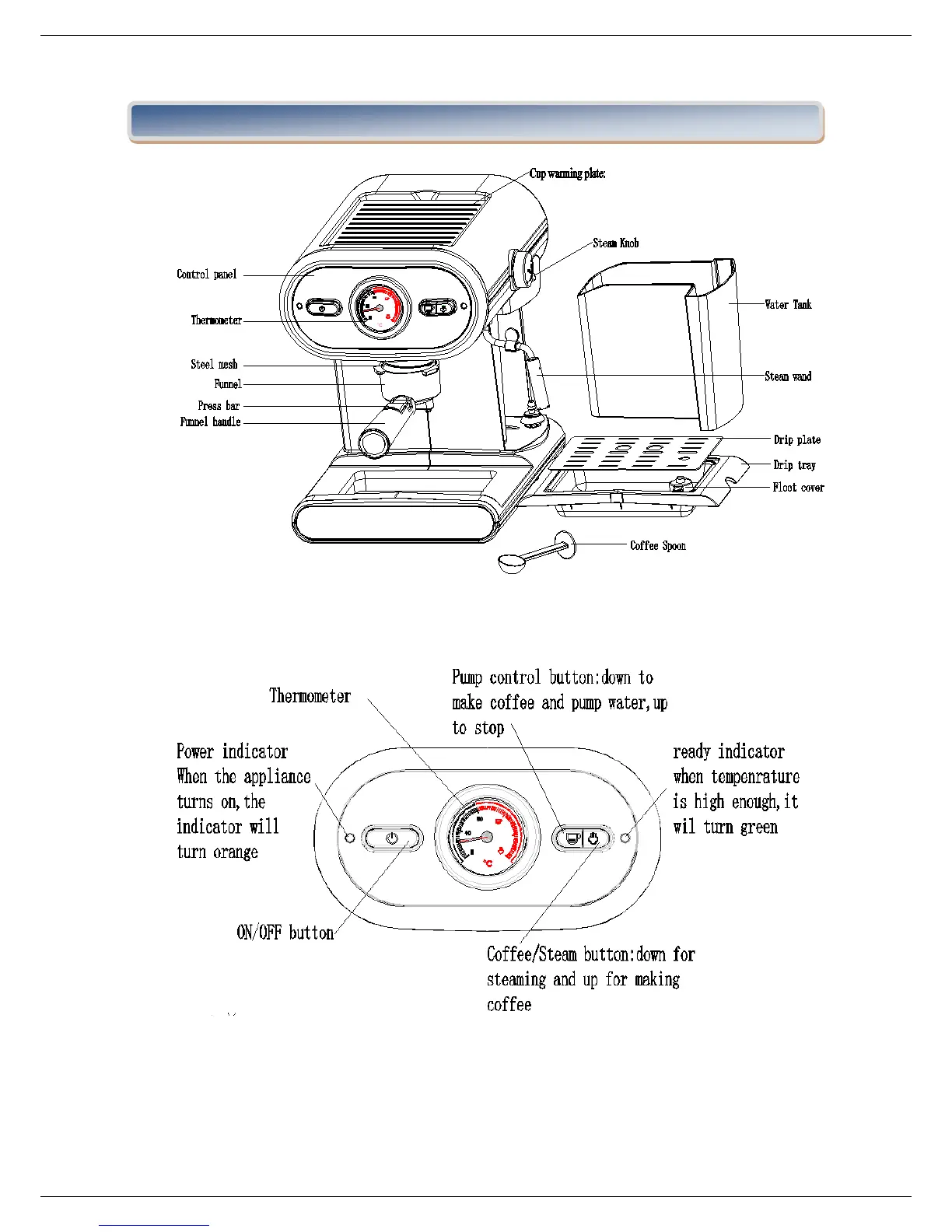 Heinner HEM-1100BK - Espresso Maker Product Overview; Control Panel and Indicators