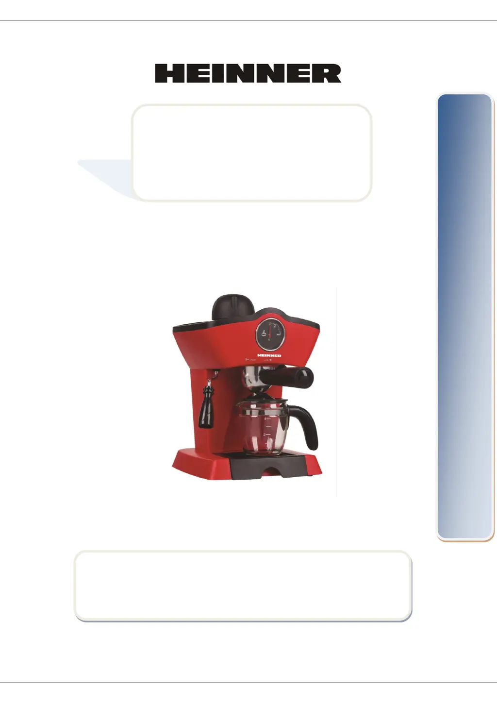 The Heinner Coffee Maker steam may not froth because the steam ready indicator (green indicator) is not illuminated. Steam can only be used to froth after the steam ready indicator (green indicator) illuminates. Also, the container might be too big or not the right shape; use a high and narrow cup. Lastly, skimmed milk may prevent frothing; use whole milk or half-skimmed milk instead.