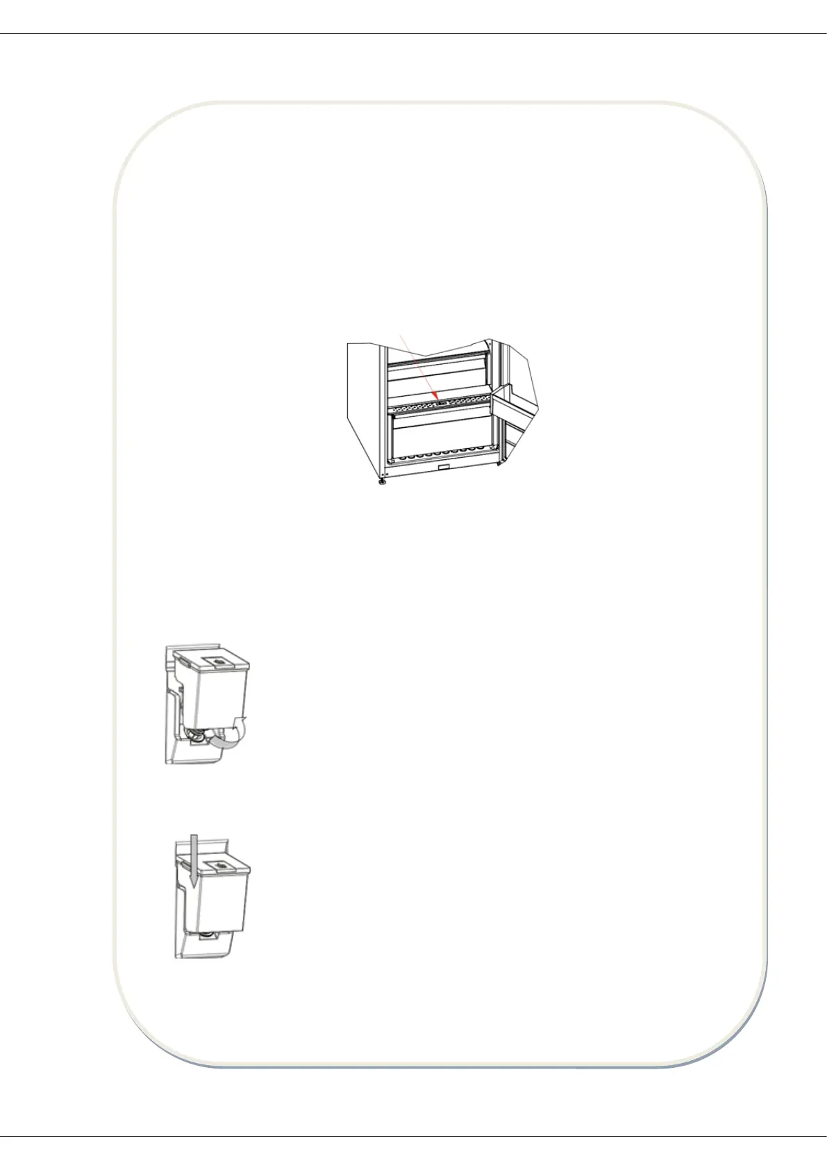 Place the water tank in the details of the door plastic pitched in the direction of the arrow.