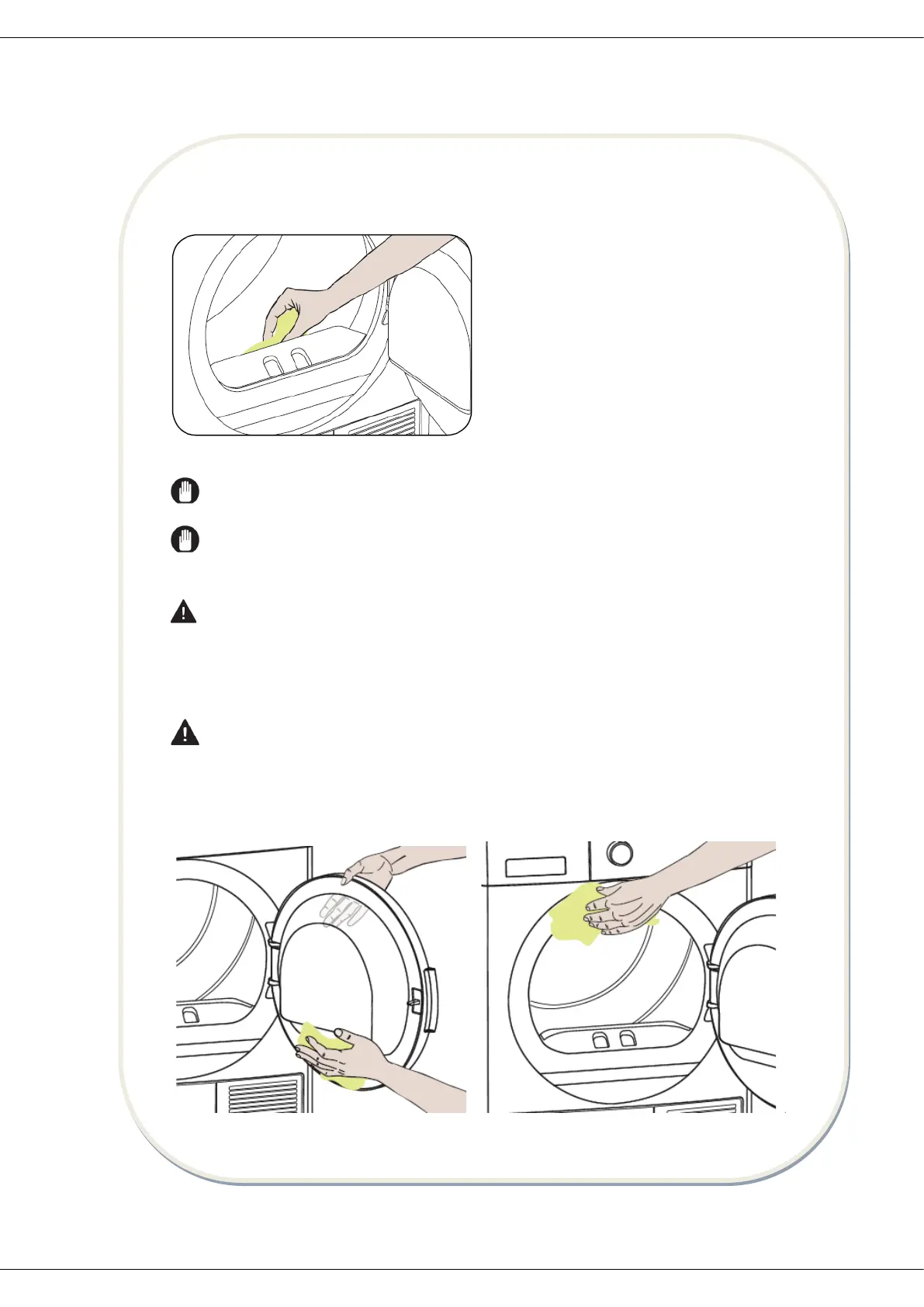 Deschideți ușa de încărcare a uscătorului și curățați toate suprafețele interioare și garnitura