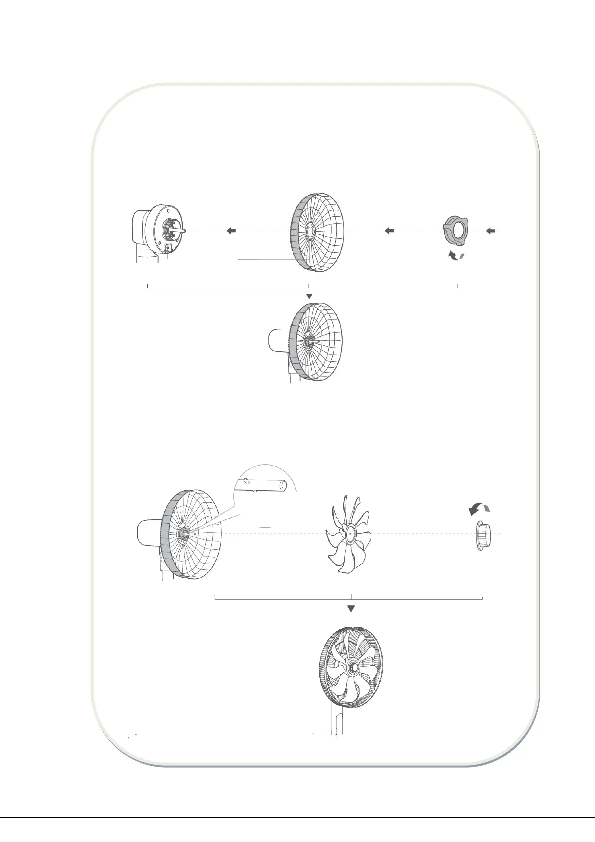Подравнете главата на вентилатора със задната предпазна решетка, съединете ги