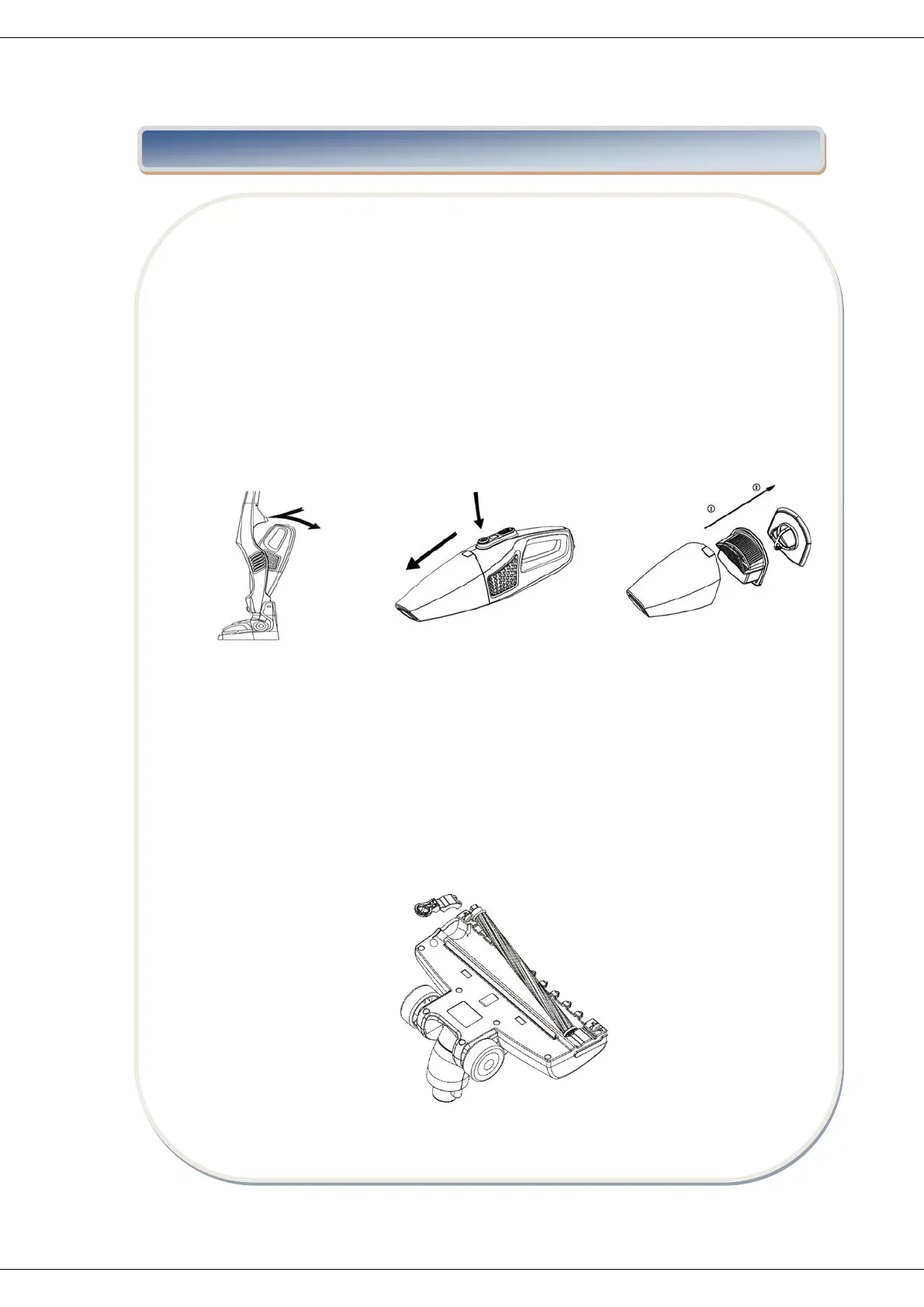 1. Apăsați pe butonul pentru decuplarea aspiratorului de mână și detașați aspiratorul de